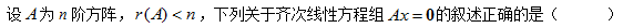 设非齐次线性方程组Ax=b,其中A为m×n阶矩阵,r(A)=r,则( )