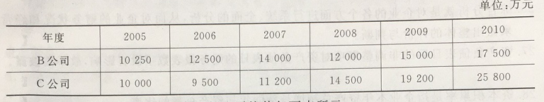 (1)B公司和C公司为规模差果较小的T制造业,205~2010年的销售收入如下素原完