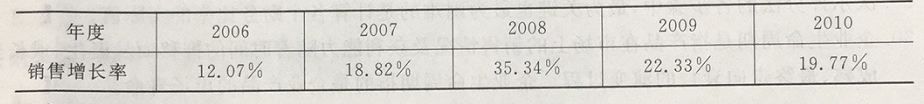 (2)2006~2010年的销售增长率的行业平均值如下表所示: