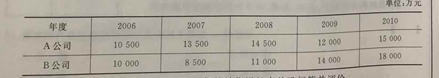 A公司与B公司为同一行业的两家不同的公司,2006~2010年的销售收入如下表所示: