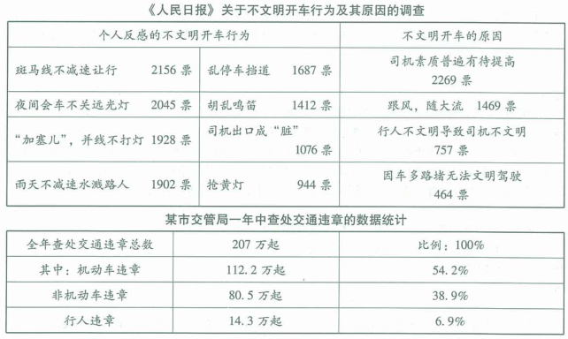 交通环境是由人、车、路构成的公共生活领域之一。目前,我国机动车拥有量已超过1.78亿辆,拥有驾照的公民已超过1.3亿人。由此带来一系列的交通安全问题,引发社会公众强烈反响。下列是有关交通问题的一些调查数据: