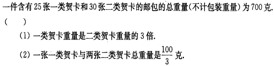 某人需要处理若干份文件,第1小时处理了全部文件的1/5,第2小时处理了剩余文件的1/4,则此人需要处理的文件数为25份.(1)前两个小时处理了10份文件.(2)第二小时处理了5份文件.