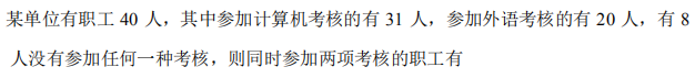 车间共有40人,某技术操作考核的平均成绩为80分,其中男工平均成绩为83分,女工平均成绩为78分。该车间有女工( )