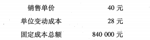 某公司目标销售量为 50 000 件,销售单价 5 元,单位变动成本 3 元,全年固定成本 40 000 元。