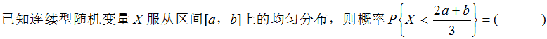 设随机变量X在[-1,2]上服从均匀分布,则随机变量X的概率密度f(x)为( )