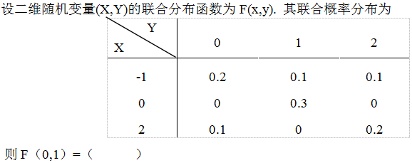 联合分布函数是F(x,y),则有F(2,1)=