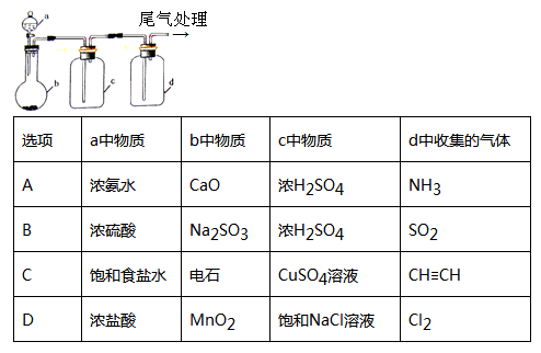 实验室中某些气体的制取、除杂及收集装置如图所示。仅用此装置和表中提供的物质完成相关实验,最合理的是()