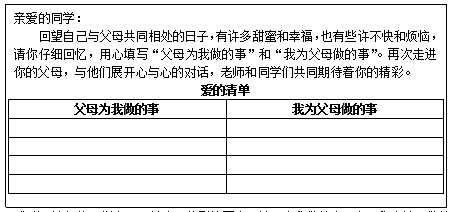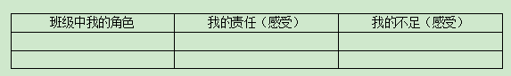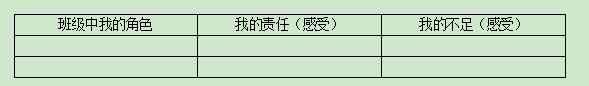 即兴表演:家庭中的我,学校中的我,社会中的我(活动提示:在表演中要分为正反两组进行,既要有承担责任的表演又要有推脱责任的表演。)