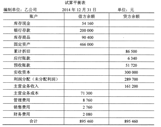 2014年12月31日乙公司账项调整前的试算平衡表如下表所示: