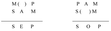 在下列各式的括号内填入适当的符号,使之成为有效的三段论式