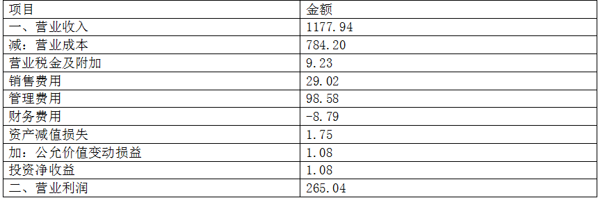 空天精工股份有限公司2016年度母公司利润表(单位:万元)