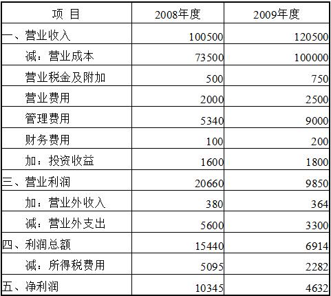 以下是A公司2008年及2009年的利润表: 利润表 单位:元