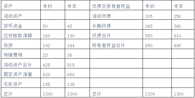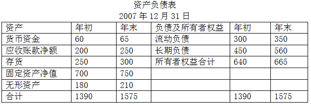 丙公司2007年销售收入800万元,税前利润200万元,其他有关财务资料如下(单位:万元):