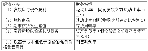 要求:指出表中每一行中左边的经济业务对右边所对应的财务指标有何影响(增加、减少或不变)。