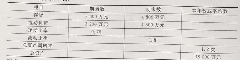 某公司总资产期初金额为2400万元(其中存货为540万元)、期末金额为3375万元;期初流动负债为450万元,期末流动负债为675万元;期初长期负债为750万元,期末长期负债为1350万元。期初速动比率为0.75,期末流动比率为1.6(假定公司流动资产由速动资产和存货构成)。 要求: