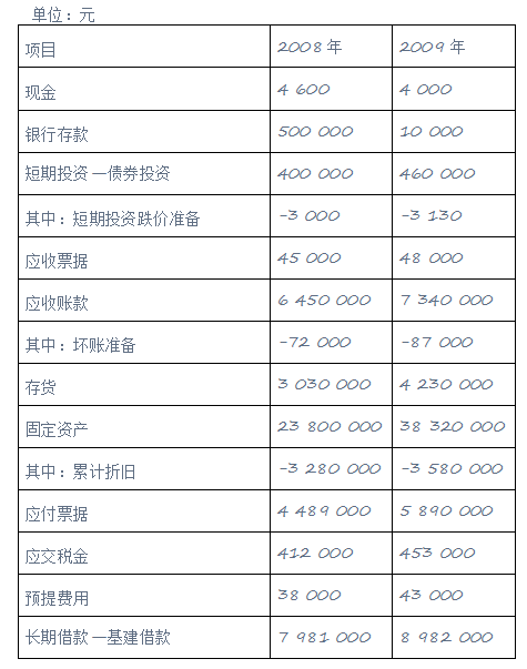 A公司2008年年末和2009年年末的部分资料见下表: