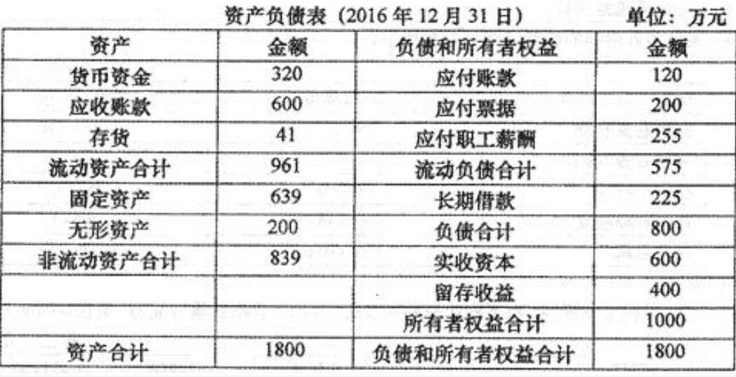 D公司是一家服装加工企业,该公司2016年净利润为750万元,利息费用为200万元,所得税税率为25%,年末的简化资产负债表如下表所示: