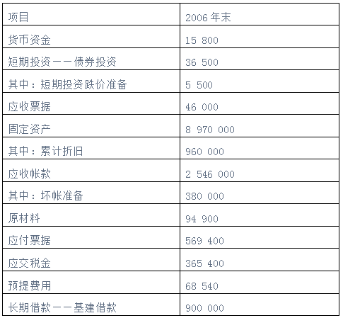 大华公司2006年年末部分资料如下: 单位:元