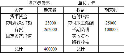 已知:(1)期末流动比率=1.5; (2)期末资产负债率=60%; (3)本期销售成本=315000元; (4)本期存货周转次数=4.5次,假定期末存货与期初存货相等。