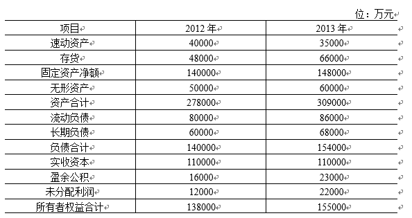 C公司2012和2013年末的比较资产负债表财务数据如下: