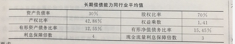 (2)2010年度该公司税前利润为1350万元;利息费用390万元,其中资本化利息130万元;息税前经营活动现金流量为1450万元;现金利息支出340万元。(3)同行业的长期偿债能力的平均值如下表所示: