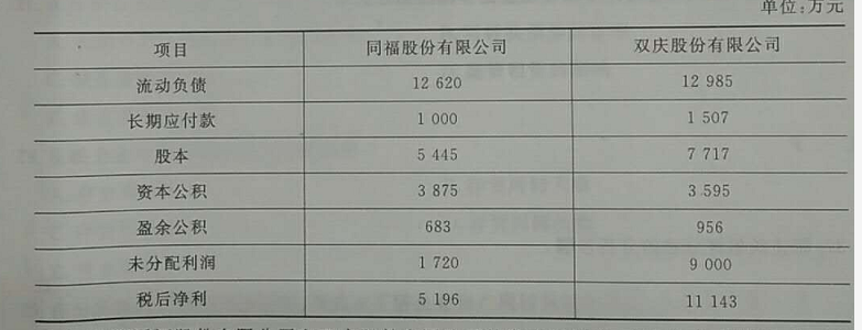 .同福股份有限公司和双庆股份有限公司属于同一行业的两个不同企业,有关资料如下表:
