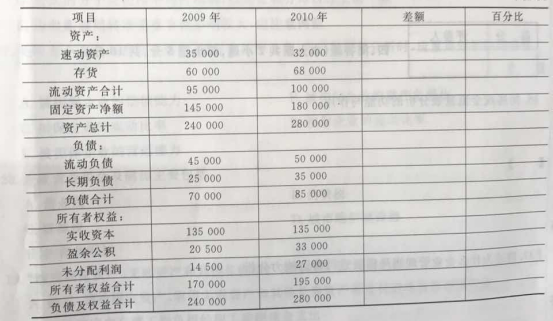43.某公司2009和2010年末的比较资产负债表有关数据如下: 单位:元