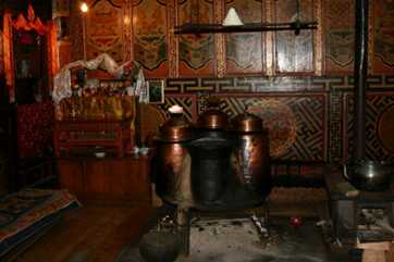 我国不同民族的室内装饰与居住环境各有特色。下图的民居室内装饰反映的民族特色是( )。