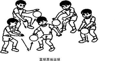 【行进间运球】动作方法:向前运球时,目视前方,上体稍前倾,以肘为轴,用力按拍球的后上方,同时后脚蹬地运球前进,球的落点在同侧脚的侧前方,跑动的步伐与球弹起的节奏协调一致。手、臂动作与原地运球相同。 请根据上述材料完成下列问题: