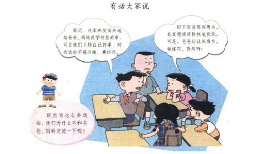 你能理解他们吗 我们和爸爸、妈妈生活在一起,但是,很多时候,我们对他们并不是很了解。让我们一起来读读爸爸、 妈妈的心。 小强做了晩饭,爸爸妈妈都夸好吃,小强想:“我做的味道还不如妈妈,他们为什么说好吃?” 晓红在同学家做作业,回家晩了,爸爸很生气问她:“为什么回来这么晩?”晓红很纳闷,为什么爸爸要发这么大的火。