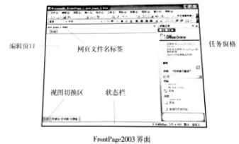 依次单击“开始”—“所有程序”—“Microsoft Office”—“Microsoft Office FrontPage 2003”,运行FrontPage后,其界面如下图所示: