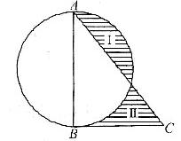 如图,AB是圆的直径,AB=20cm.BC与圆相切于B,若阴影(Ⅰ)的面积比阴影(Ⅱ)的面积大7cm²,则BC长为( )(本题圆周率π≈3.14).