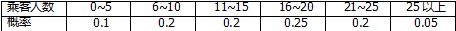 经统计,某机场的一个安检口每天中午办理安检手续的乘客人数及相应的概率如下表: