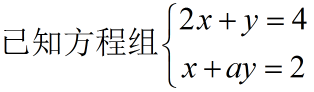 方程组x+y=2,2x+ay=4有无穷多解,求a的值。