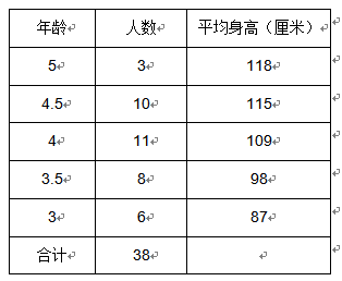 列出公式并计算下表中幼儿的平均身高(保留整数)。