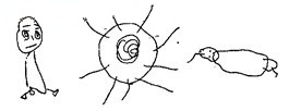 用纸的底部或者划上一条底线作为地平面,在地平面上一字排列着物体,这种使用基底线的作画方式,是早期儿童画的特征之一。