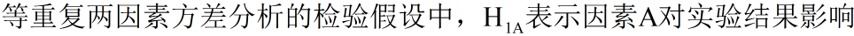 对于等重复两因素方差分析,实验中考虑A和B两个因素,则检验的问题是:因素A、因素B及其搭配对实验结果。