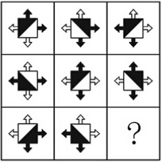 下列图形组合的变化呈现出一定的规律性。下列选项中,最适合填在问号处的是( )。