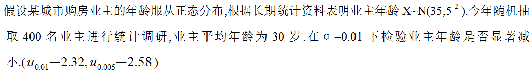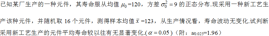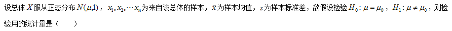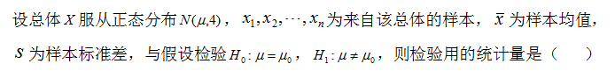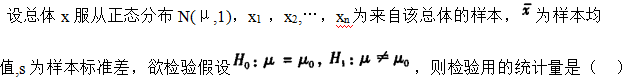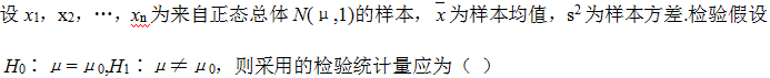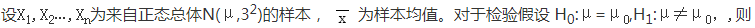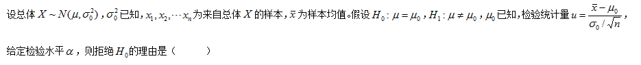 设总体, 已知, 为来自总体X的样本,为样本均值。假设,已知,检验统计量,给定显著性水平α,则的拒绝域为( )