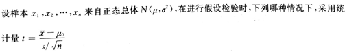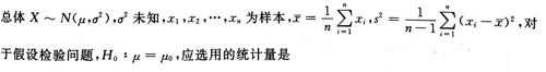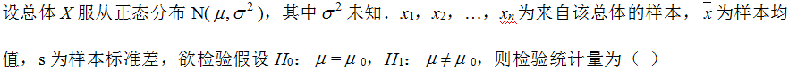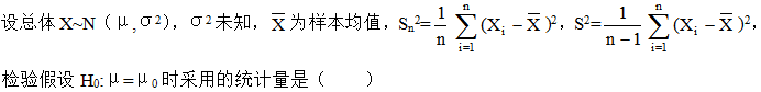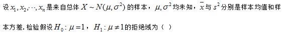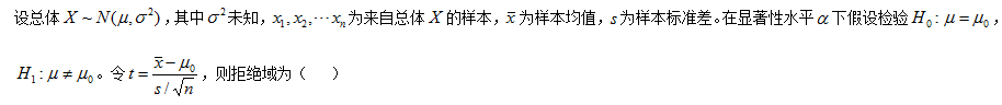 设(n>1)为来自正态总体N(μ,σ²)的样本,其中σ²未知,和S²分别是样本均值和样本方差,对于检验假设,当显著性水平为α时的拒绝域为( )