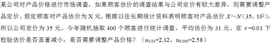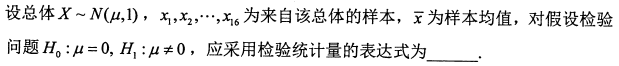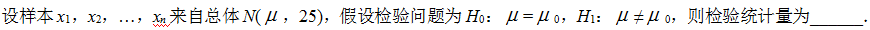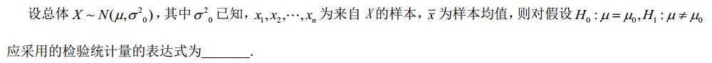 设总体X~N(μ,4),为来自X的样本,为样本均值,则检验假设应采用的统计量表达式为 。