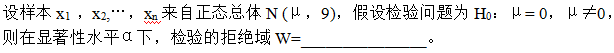 设总体, 已知, 为来自总体X的样本,为样本均值。假设,已知,检验统计量,给定显著性水平α,则的拒绝域为( )