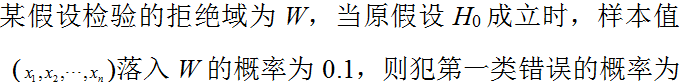 设某个检验假设的拒绝域为W,当原假设
