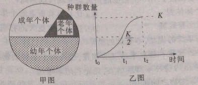 某种群的年龄组成如甲图所示,增长曲线如乙图所示。下列有关叙述正确的是()。