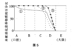 淀粉、脂肪和蛋白质3种物质在消化道中的过程如图5所示。其中表示淀粉和脂肪消化曲线的分别是()