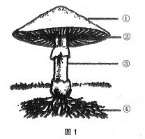 在图1所示的蘑菇中,能产生孢子的部位是()。