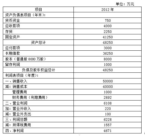 甲公司是一家火力发电上市企业,2012年12月31日的股票价格为每股5元。为了对当前股价是否偏离价值进行判断,公司拟对企业整体价值进行评估,有关资料如下: