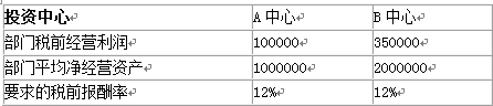 某公司下设A、B两个投资中心。A投资中心的部门平均净经营资产为2000万元,投资报酬率为15%;B投资中心的投资报酬率14%,剩余收益为200万元。设该公司要求的税前投资报酬率为10%。 要求: