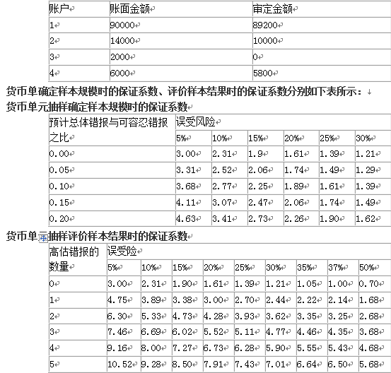 (4) 甲公司原材料年末余额为10 000万元,包括3 000个项目。A 注册会计师在实施计价测试时,抽样选取了 50个项目作为测试样本,发现两个样本存在错报,这两个样本的账面金额为150万元和50万元,审定金额为120万元和40万元。A 注册会计师采用比率法推断的总体错报为2 400万元。