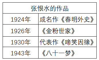本题考查对张恨水作品的掌握情况。如图所示,可知本题选B。